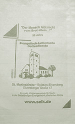 Diese Aktion verdankt sich meiner Erinnerung, dass irgendwann mal Ähnliches ich glaube in Gifhorn [stimmt! Anm. der Redaktion] gelaufen war. Der Bäcker gehört zur Gemeinde. Die Verhandlungen mit dem Tütenhersteller (Markgraf Werbung & Verpackung, Im Langental 7, 66539 Neunkirchen, Tel. 06821/ 9403-30, Fax. 06821/ 9403-19, E-Mail: Diese E-Mail-Adresse ist gegen Spambots geschützt! JavaScript muss aktiviert werden, damit sie angezeigt werden kann. ) habe ich geführt. Er beliefert bundesweit Firmen mit Verpackungsmaterial und hat seinerseits gerade erst in dieser Art von Werbung einen Markt entdeckt.
